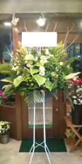 とても綺麗なグリーン系のスタンド花です。 色合いがとても綺麗です。 意外とありそうでなかったグリーン系のスタンド花☆ こちらの商品は、お届け日1週間前までのご注文のみにさせて頂きます。 予めご了承下さい。
