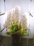 開店祝や御祝にかかせない胡蝶蘭。 お花の王様、最高級のお花です。 一番人気の胡蝶蘭白3本立です。 3本立ち中でもハイクラスです。 当店が自信を持ってお勧め致します。